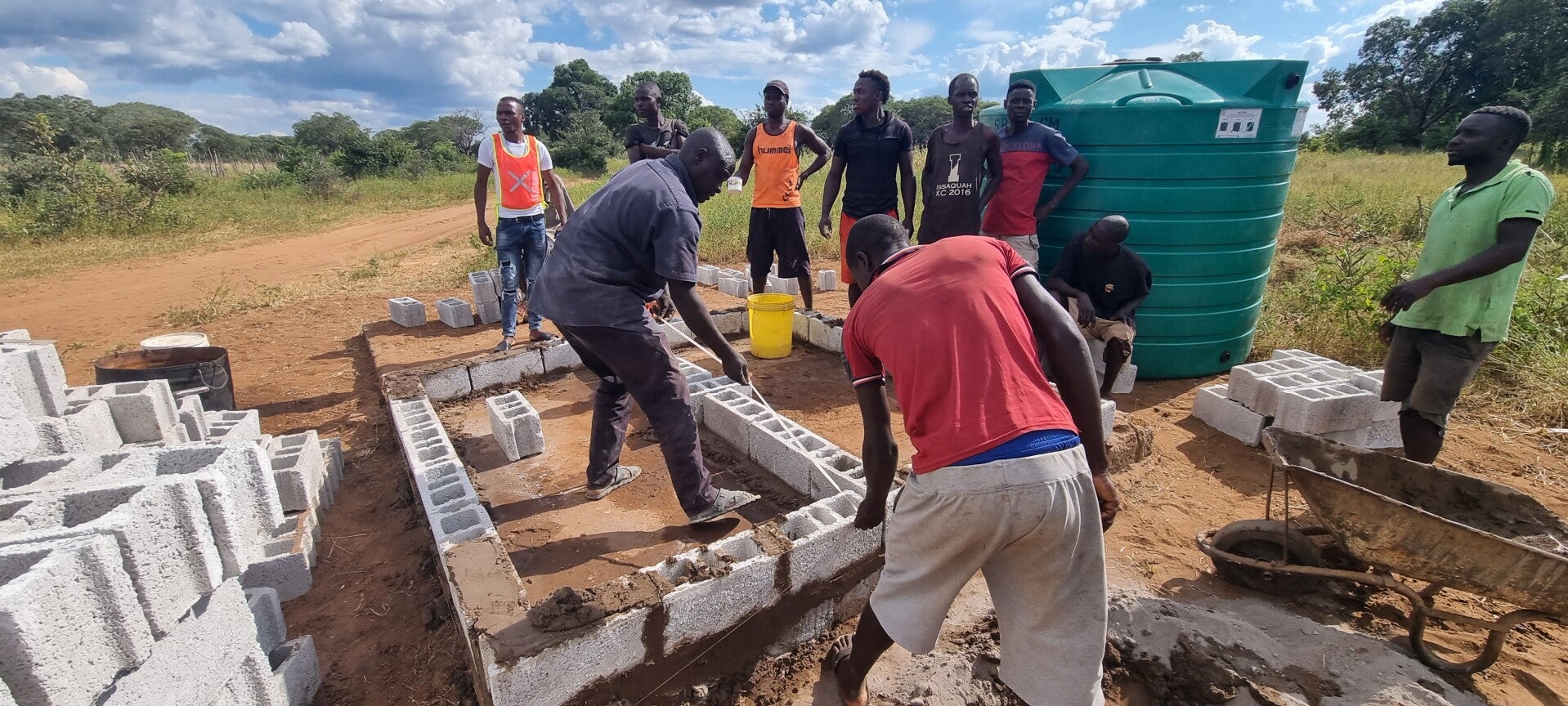 Die Dorfgemeinschaft baut eine Trinkwassertank-Konstruktion
